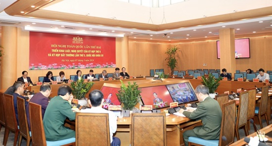 Hội nghị diễn ra dưới hình thức trực tiếp tại Nhà Quốc hội, đồng thời kết nối trực tuyến tới 63 điểm cầu tại các tỉnh/thành phố trong cả nước (Quang cảnh điểm cầu Thành phố Hà Nội).