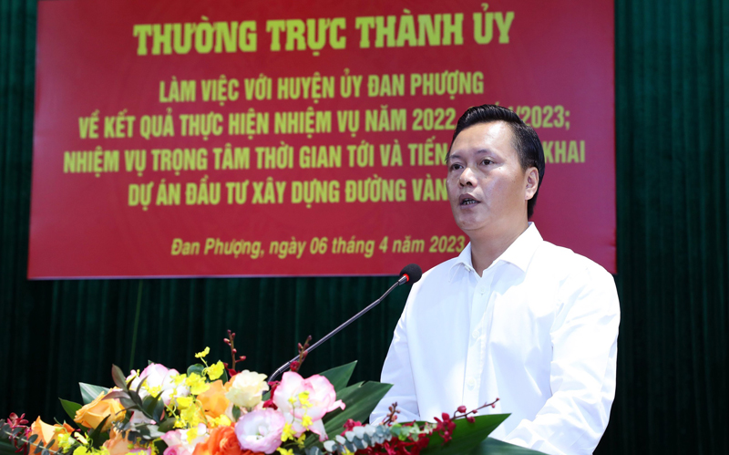 Thường trực Thành ủy đề nghị Đan Phượng phân tích rõ những tiềm năng, lợi thế phát triển của huyện, những vấn đề còn hạn chế, tồn tại, những “điểm nghẽn” cần phải khơi thông. Trước tiên, cần rà soát, đánh giá đội ngũ cán bộ để chuẩn bị một bước cho quá trình phát triển từ xã lên phường, huyện lên quận, với yêu cầu phát triển đô thị sinh thái, mang bản sắc riêng. Huyện cũng cần bám sát các sở, ngành thành phố, tham mưu phương án xử lý dứt điểm đối với các dự án sử dụng đất chậm triển khai. Cùng với đó, tập trung giải phóng mặt bằng dự án Vành đai 4 - Vùng Thủ đô đảm bảo tiến độ được giao.