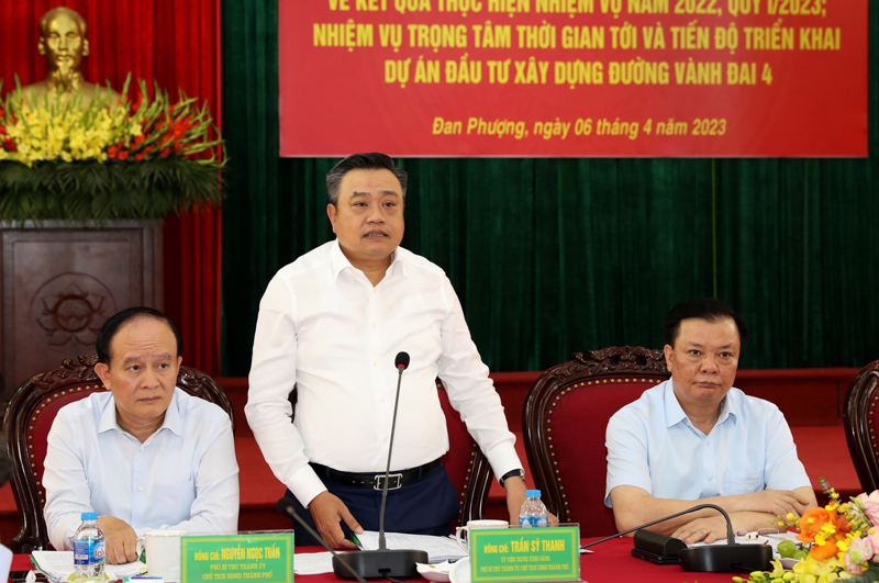 Liên quan đến việc triển khai dự án Vành đai 4 - Vùng Thủ đô, Bí thư Thành ủy Đinh Tiến Dũng đề nghị tập thể lãnh đạo huyện phải thường xuyên đôn đốc, huy động sự vào cuộc của cả hệ thống chính trị; tập trung cao độ nguồn lực nhằm phục vụ công tác đo đạc, kiểm đếm, di chuyển mồ mả, xây dựng khu tái định cư…, kiên quyết bảo đảm theo tiến độ chung của thành phố.