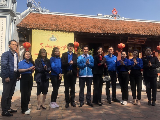 Đại diện các cơ sở đoàn chụp ảnh tại Đình thờ Tiên triết Chu Văn An