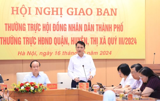 Sáng 16-10, Phó Bí thư Thành ủy, Chủ tịch HĐND thành phố Hà Nội Nguyễn Ngọc Tuấn chủ trì hội nghị giao ban giữa Thường trực HĐND thành phố với Thường trực HĐND các quận, huyện, thị xã quý III-2024.