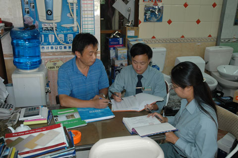 Cán bộ Chi cục Thuế Cầu Giấy kiểm tra hộ kinh doanh trên địa bàn.