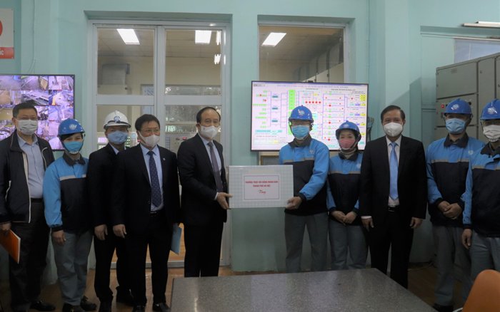 Đồng chí Nguyễn Ngọc Tuấn trao quà của Thành phố chúc Tết tập thể cán bộ, công nhân viên Công ty