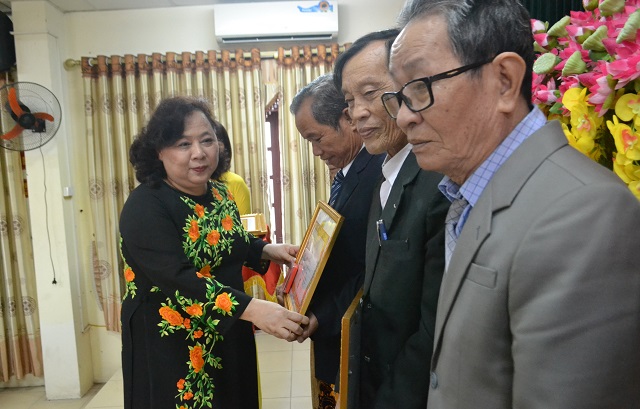 Đồng chí Nguyễn Thị Bích Ngọc trao huy hiệu 70 năm tuổi Đảng cho các đảng viên
