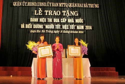Ngày 2/10/2014, Quận ủy, HĐND, UBND, Ủy ban MTTQ quận Hai Bà Trưng đã tổ chức Hội nghị biểu dương “Người tốt - Việc tốt” năm 2014. Đồng chí Ngô Thị Doãn Thanh, Ủy viên Trung ương Đảng, Phó Bí thư Thành ủy, Chủ tịch HDDND thành phố Hà Nội tới dự và có bài phát biểu tại Hội nghị. Chào mừng 60 năm Giải phóng Thủ đô, ngay từ đầu năm quận Hai Bà Trưng đã phát động các phong trào thi đua yêu nước tới các cấp, ngành và nhân dân toàn quận. 9 tháng đầu năm, Đảng bộ, chính quyền và nhân dân quận Hai Bà Trưng đã phát huy truyền thống đoàn kết, thi đua phấn đấu thực hiện tốt nhiệm vụ chính trị của quận và đã đạt được kết quả khá toàn diện trên các lĩnh vực kinh tế - xã hội, quốc phòng an ninh. Một số thành tích nổi bật có thể kể tới như: Tổng thu ngân sách nhà nước trên địa bàn quận ước 9 tháng đạt 93% kế hoạch; Thực hiện “Năm trật tự văn minh đô thị” đạt kết quả tốt, bộ mặt đô thị trên địa bàn quận cơ bản “Sáng - Xanh - Sạch - Đẹp” hơn; Dự án đường vành đai I, xây dựng đường vành đai II, nâng cấp, mở rộng đường Thanh Nhàn... và nhiều dự án khác đang được triển khai đúng tiến độ, đảm bảo chất lượng; 100% các công trình xây dựng được kiểm soát, tỷ lệ công trình xây dựng có phép đạt trên 98%...