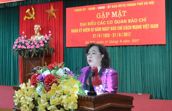 Sáng 17-6, tại Hà Nội, Thành ủy, HĐND, UBND, Ủy ban MTTQ Việt Nam thành phố Hà Nội đã tổ chức gặp mặt đại biểu các cơ quan báo chí nhân dịp kỷ niệm 92 năm Ngày Báo chí Cách mạng Việt Nam (21/6/1925 - 21/6/2017).