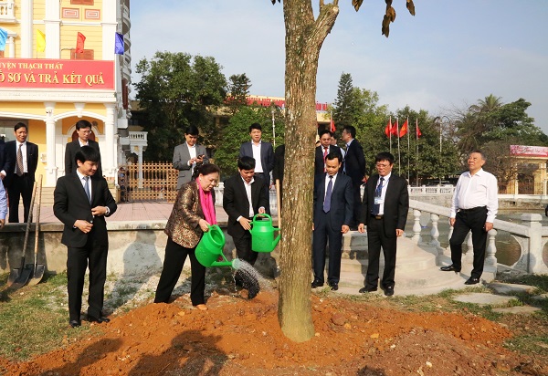 Chủ tịch HĐND TP trồng cây tại khuôn viên trụ sở Huyện ủy - HĐND - UBND huyện Thạch Thất