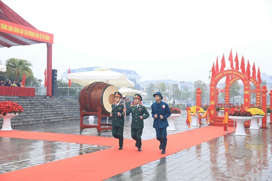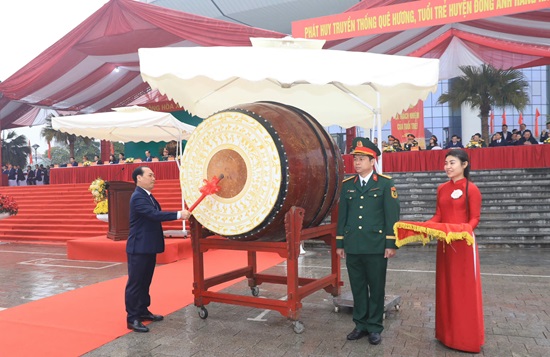 Chủ tịch UBND huyện Nguyễn Anh Dũng đánh hồi trống giao quân