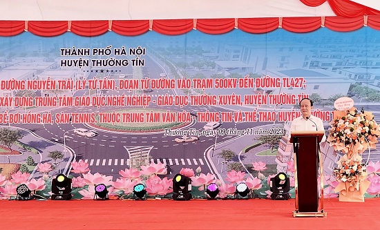 Sáng 9/11/2023, Phó Bí thư Thành ủy, Chủ tịch HĐND thành phố, Phó Trưởng đoàn ĐBQH thành phố Nguyễn Ngọc Tuấn đã dự lễ thông xe kỹ thuật Dự án đường Nguyễn Trãi (đoạn từ đường tỉnh lộ 427 đến đường ngang trạm điện 500kV) huyện Thường Tín và khởi công xây dựng 2 dự án lĩnh vực văn hóa, giáo dục trên địa bàn huyện.