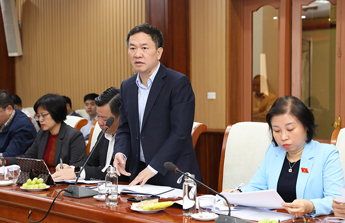 Chủ tịch UBND huyện Đan Phượng Lê Thanh Nam báo cáo tại buổi làm việc