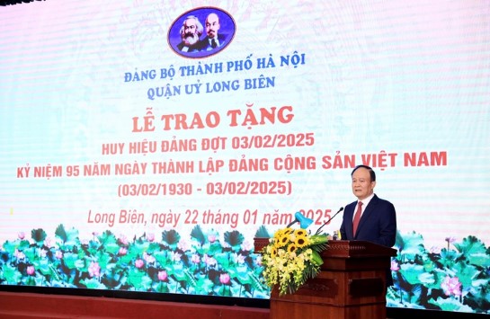 Đối với Đảng bộ quận Long Biên, Phó Bí thư Thành ủy, Chủ tịch HĐND Thành phố Nguyễn Ngọc Tuấn cho biết, thời gian qua, công tác xây dựng Đảng, hệ thống chính trị, hoạt động của Chính quyền, MTTQ và các tổ chức chính trị - xã hội của quận đã không ngừng được củng cố và triển khai bài bản, nhiều đổi mới, hiệu quả. Đặc biệt, thu cân đối ngân sách trên địa bàn quận đạt trên 20.000 tỷ đồng, vượt 150% so với dự toán Thành phố giao, đây cũng là con số "kỷ lục" đạt được cao nhất trong 21 năm xây dựng và phát triển của quận Long Biên.