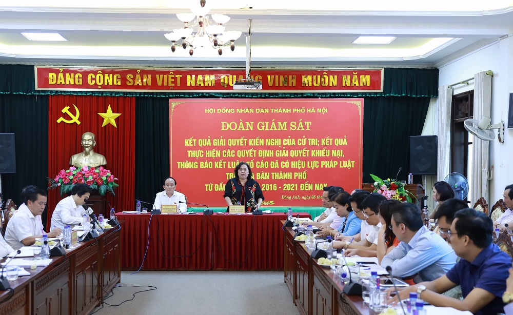 Kết luận tại buổi giám sát Chủ tịch HĐND Thành phố Nguyễn Thị Bích Ngọc khẳng định: Giải quyết đơn thư khiếu nại, tố cáo là một trong những nhiệm vụ nổi bật của HĐND Thành phố. Sau đợt giám sát này, Thường trực HĐND Thành phố sẽ có kiến nghị các cấp, các ngành có giải pháp đẩy nhanh giải quyết những vụ việc tồn đọng, nếu vẫn không thực hiện, chỉ rõ trách nhiệm thuộc cá nhân, đơn vị nào, tiến độ bao giờ xong. HĐND sẽ có cách xử lý với từng vụ việc cụ thể. “Đề nghị Ban Pháp chế và các đơn vị liên quan thống nhất lại về số liệu, phân loại vụ việc, các vụ còn lại thuộc trách nhiệm ở đâu, để sau đó HĐND Thành phố có báo cáo thống nhất, làm việc cụ thể với UBND Thành phố và ban hành một nghị quyết về công tác này của Thành phố”. Chủ tịch Nguyễn Thị Bích Ngọc đánh giá: Thời gian qua, cấp ủy, chính quyền huyện Đông Anh rất coi trọng, quyết liệt trong công tác này, nên trong 1 năm qua đã giải quyết khoảng 40% tổng số các ý kiến kiến nghị của cử tri, quyết định giải quyết khiếu nại, thông báo kết luận tố cáo đã có hiệu lực và các vụ việc thuộc Nghị quyết 15, trong đó lãnh đạo huyện thể hiện nắm chắc vấn đề, phân công phân nhiệm rõ ràng cho các đơn vị, góp phần đảm bảo an ninh trật tự trên địa bàn.