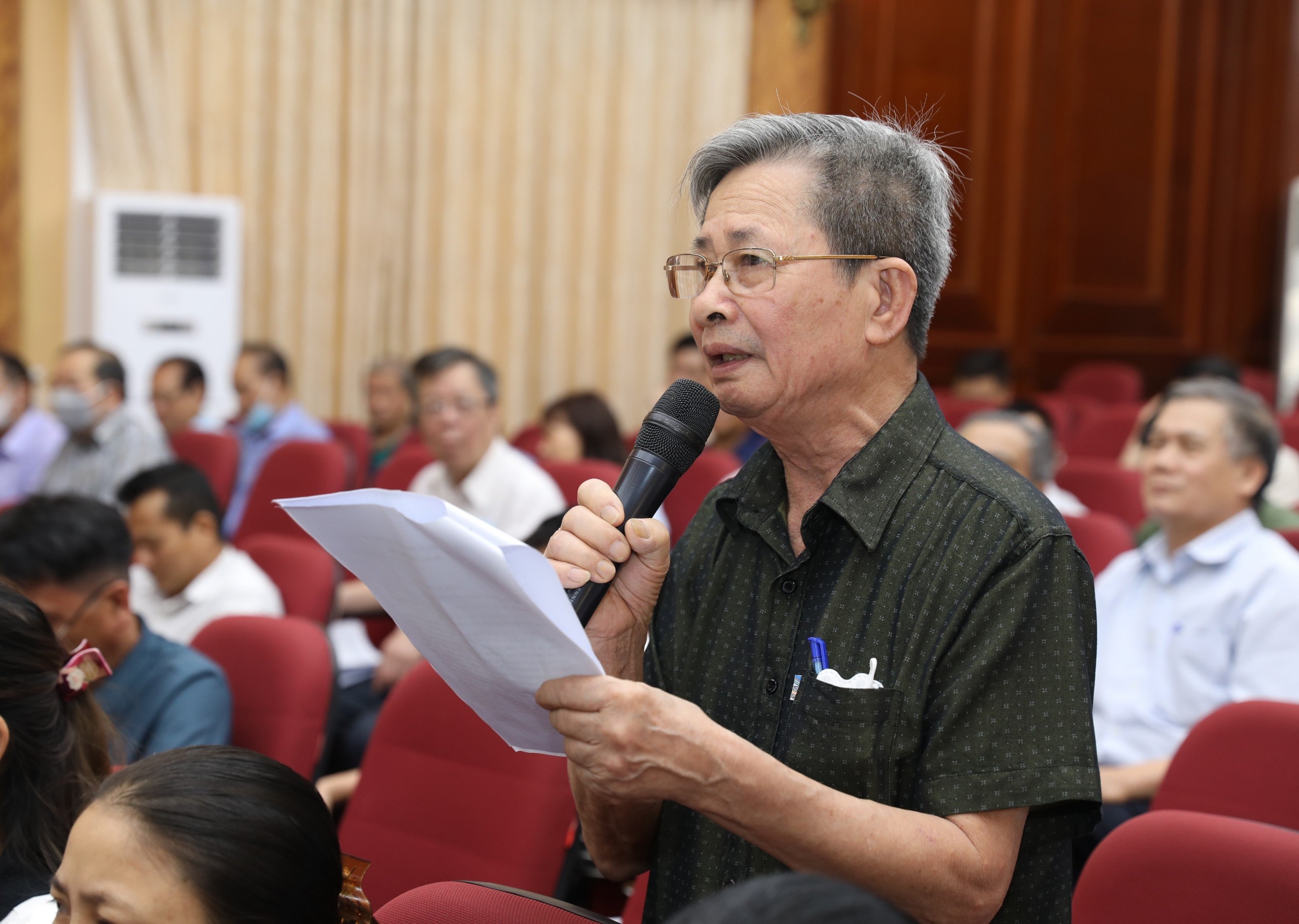 Cử tri quận Nam Từ Liêm phát biểu ý kiến tại hội nghị