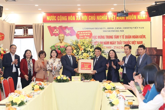 Đoàn thăm, chúc mừng Trung tâm Y tế quận Hoàn Kiếm