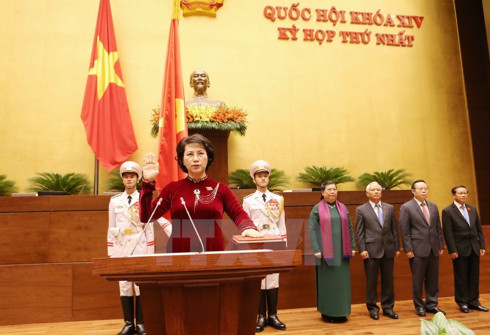 Chủ tịch Quốc hội khóa XIV Nguyễn Thị Kim Ngân tuyên thệ nhậm chức. Ảnh: TTXVN