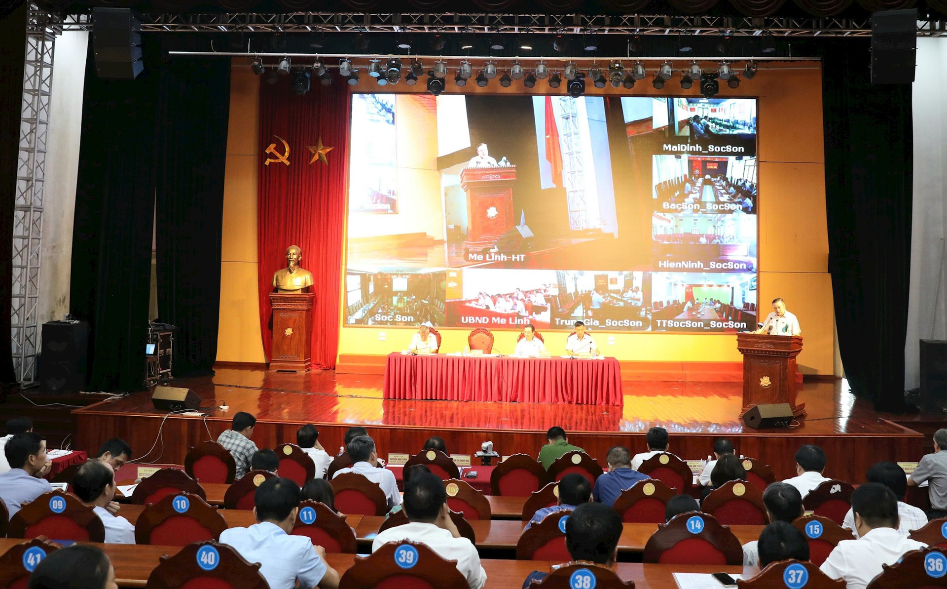 Hội nghị được tổ chức trực tiếp kết hợp trực tuyến kết nối từ điểm cầu chính tại trụ sở UBND huyện Mê Linh với huyện Sóc Sơn.
