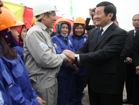 Chủ tịch nước Trương Tấn Sang thăm hỏi các công nhân tại Khu công nghiệp