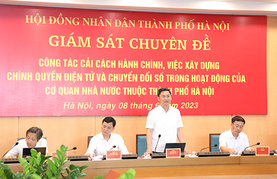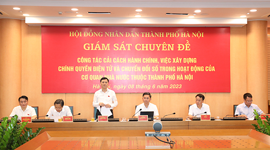 Sáng 8/6/2023, Phó Chủ tịch HĐND thành phố Hà Nội Phạm Quí Tiên đã chủ trì buổi giám sát chuyên đề của HĐND thành phố đối với UBND thành phố Hà Nội về công tác cải cách hành chính (CCHC), việc xây dựng chính quyền điện tử và chuyển đổi số trong hoạt động của cơ quan nhà nước thuộc thành phố Hà Nội.