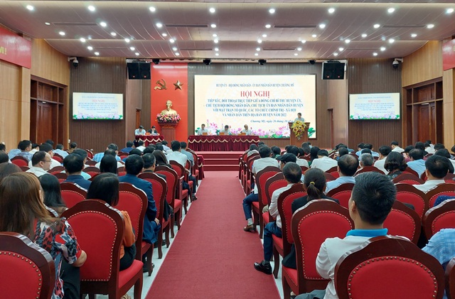 Sáng 26/10/2022, Huyện ủy - HĐND - UBND huyện Chương Mỹ tổ chức hội nghị đối thoại giữa đồng chí Bí thư Huyện ủy, Chủ tịch HĐND, Chủ tịch UBND huyện với Ủy ban MTTQ, các tổ chức chính trị - xã hội và Nhân dân trên địa bàn huyện năm 2022.