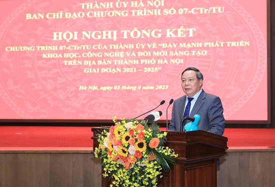 Sáng 03/4/2025, Ban Chỉ đạo Chương trình số 07-CTr/TU của Thành ủy Hà Nội (khóa XVII) về “Đẩy mạnh phát triển khoa học, công nghệ và đổi mới sáng tạo trên địa bàn thành phố Hà Nội giai đoạn 2021-2025” tổ chức hội nghị tổng kết chương trình.