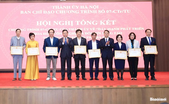 Nhân dịp này, Ban Thường vụ Thành ủy Hà Nội trao tặng Bằng khen cho 10 tập thể và 10 cá nhân có thành tích xuất sắc trong thực hiện Chương trình số 07-CTr/TU. UBND thành phố Hà Nội trao tặng Bằng khen cho 10 tập thể và 9 cá nhân có thành tích xuất sắc trong thực hiện Chương trình số 07-CTr/TU.