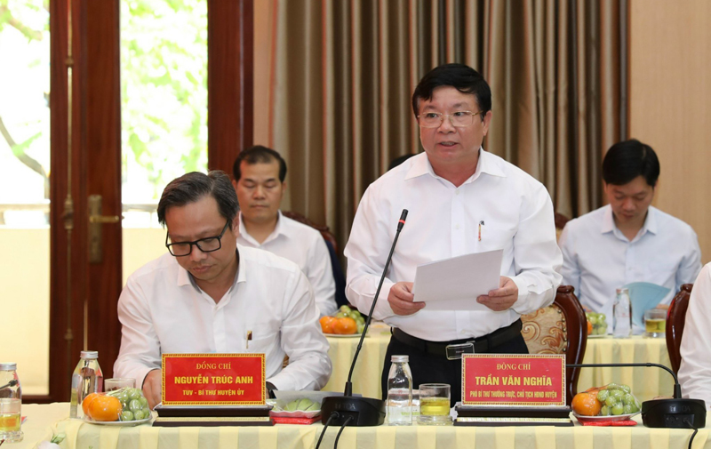 Phó Bí thư Thường trực Huyện ủy, Chủ tịch HĐND huyện Hoài Đức Trần Văn Nghĩa trình bày báo cáo tại buổi làm việc