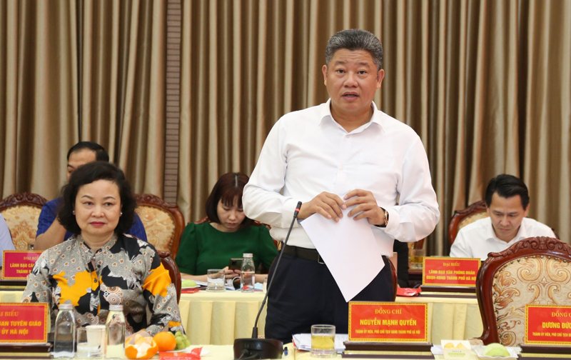 Phó Chủ tịch UBND thành phố Hà Nội Nguyễn Mạnh Quyền phát biểu tại buổi làm việc