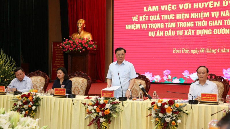 Đánh giá cao nỗ lực của huyện Hoài Đức trong công tác giải phóng mặt bằng dự án đường Vành đai 4 – Vùng Thủ đô khi đã đạt trên 50%; việc di dời mồ mả cũng đạt trên 50%, đồng chí Đinh Tiến Dũng đề nghị huyện tiếp tục huy động sự vào cuộc của cả hệ thống chính trị để hoàn thành giải phóng mặt bằng đúng tiến độ. Bí thư Thành ủy Đinh Tiến Dũng cũng khẳng định, với những kết quả mà huyện đã đạt được, thành phố đã lựa chọn Hoài Đức là điểm khởi công dự án trong thời gian tới.