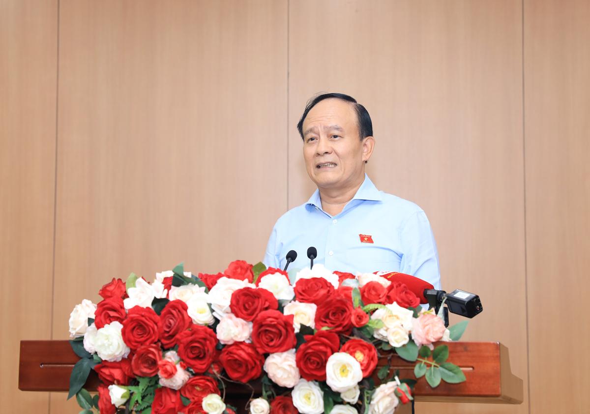 Đại biểu Quốc hội Nguyễn Tuấn Thịnh báo cáo kết quả trả lời các kiến nghị của cử tri tại kỳ tiếp xúc trước