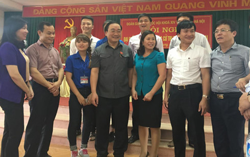 Các vị đại biểu Quốc hội trao đổi với cử tri huyện Thạch Thất