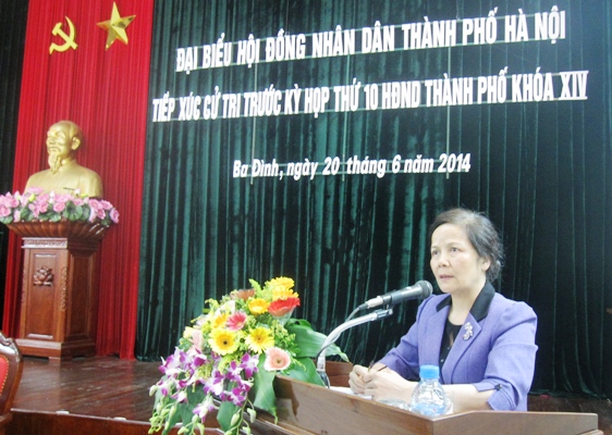 Sáng 20/6, đồng chí Ngô Thị Doãn Thanh, Uỷ viên Trung ương Đảng, Phó Bí thư Thành ủy, Chủ tịch HĐND TP Hà Nội tiếp xúc cử tri quận Ba Đình trước kỳ họp thứ 10 HĐND TP khóa XIV. Chuẩn bị cho kỳ họp thứ 10 HĐND TP, cử tri quận Ba Đình đã đề nghị HĐND Thành phố giám sát việc quản lý sử dụng đất đai, nhất là đất xen kẹt trong đô thị. HĐND TP giám sát việc thực thi văn bản của Thành phố đã ban hành; giám sát việc đặt trên trường ở 67 Cửa Bắc; Thành phố cần xem xét lại chế độ phụ cấp đối với các hội đặc thù trên địa bàn. Cử tri phường Giảng Võ bức xúc trong việc tính thuế đất bất hợp lý ở phường, vì vậy đề nghị Thành phố xem xét sửa đổi văn bản cho phù hợp; việc xây dựng xây dựng trạm biến áp 110kw ở khu đất trước công viên Thủ Lệ là không hợp với cảnh quan môi trường..
