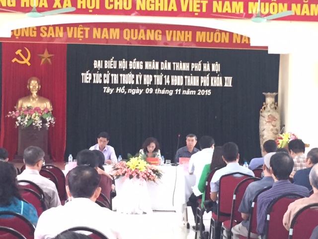 Chuẩn bị kỳ họp thứ 14 HĐND Thành phố khóa XIV sẽ diễn ra từ ngày 01/12/2015 đến ngày 05/12/2015. Các Tổ đại biểu HĐND Thành phố đã thực hiện tiếp xúc với cử tri ở các đơn vị bầu cử. Tại các buổi tiếp xúc, đại biểu HĐND Thành phố đã báo cáo với cử tri dự kiến nội dung, thời gian kỳ họp thứ 14 HĐND Thành phố, báo cáo tóm tắt tình hình thực hiện nhiệm vụ kinh tế - xã hội, an ninh, quốc phòng năm 2015, nhiệm vụ trọng tâm năm 2016 của Thành phố; Báo cáo của UBND Thành phố trả lời kiến nghị của cử tri sau kỳ họp thứ 13 HĐND Thành phố.