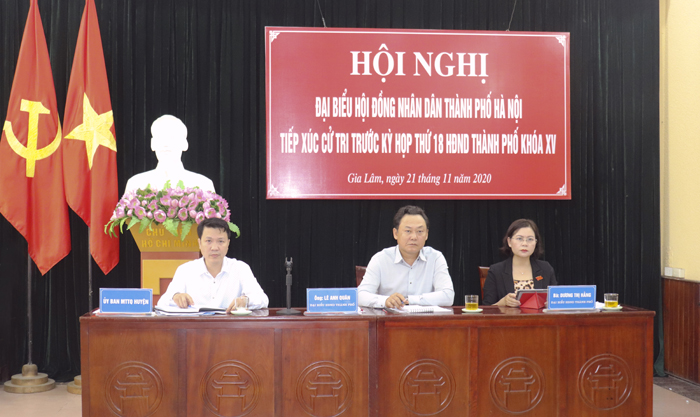 Phát biểu tại buổi tiếp xúc, đồng chí Lê Anh Quân, Thành ủy viên, Bí thư Huyện ủy, Chủ tịch UBND huyện Gia Lâm đã trả lời một số ý kiến, kiến nghị của cử tri, đồng thời, khẳng định trong thời gian tới 100% các xã, thị trấn trên địa bàn huyện có nhà văn hóa, trung tâm văn hóa phục vụ nhu cầu hội họp, văn hóa văn nghệ, thể dục thể thao của nhân dân. Đồng chí cũng giao các ban, ngành có liên quan đến các công trình, dự án đang triển khai trên địa bàn Huyện kiểm tra lại hiện trạng những vấn đề cử tri đưa ra và sớm có biện pháp giải quyết, góp phần thúc đẩy tăng trưởng kinh tế-xã hội của các xã.