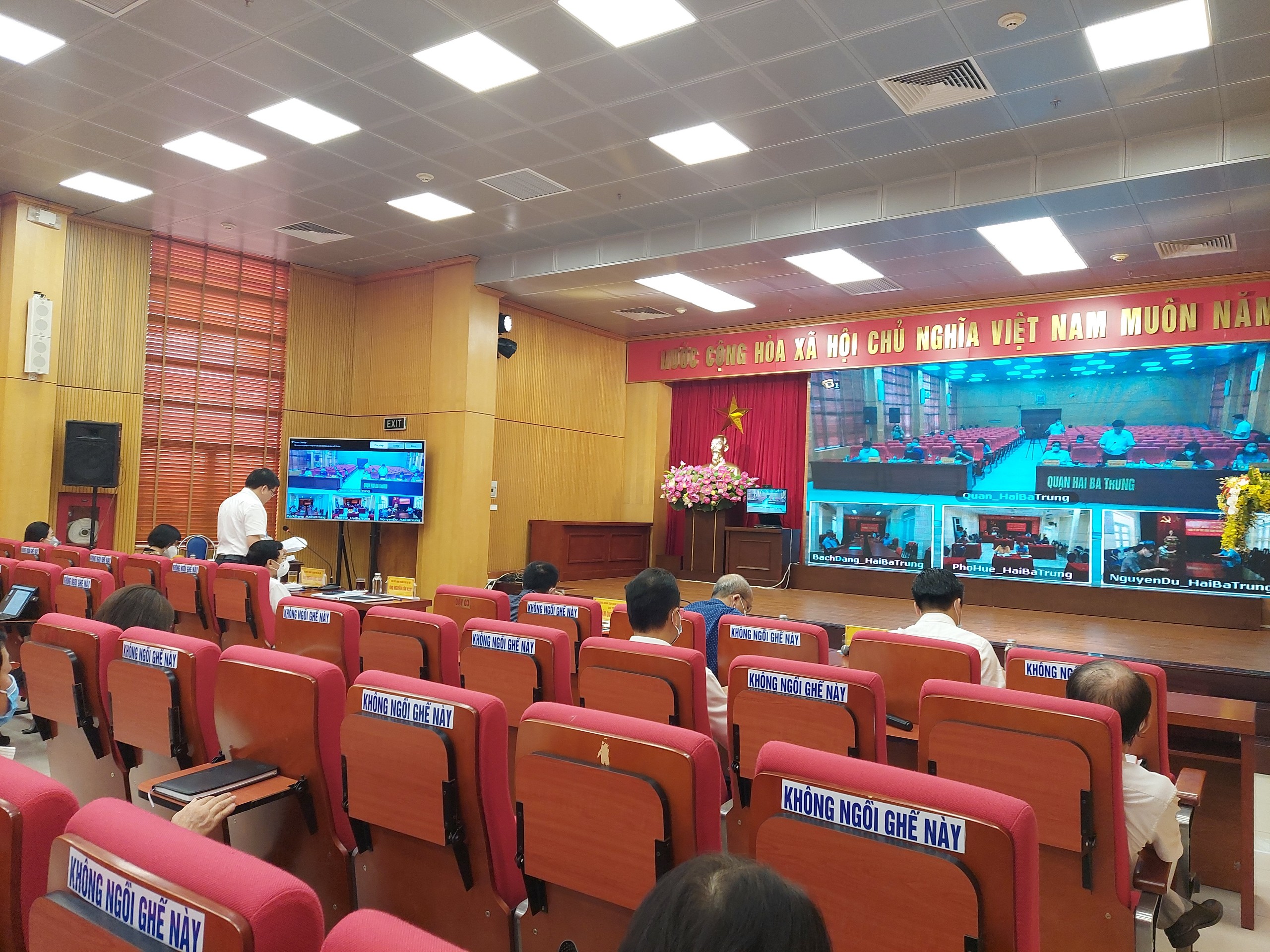 Do tình hình dịch bệnh phức tạp, các cuộc tiếp xúc cử tri đều được tổ chức theo hình thức trực tuyến từ Hội trường UBND các quận tới các phường trực thuộc. Công tác phòng, chống dịch được đặt lên hàng đầu, mỗi hội trường không quá 30 người và ngồi đảm bảo giãn cách theo quy định.