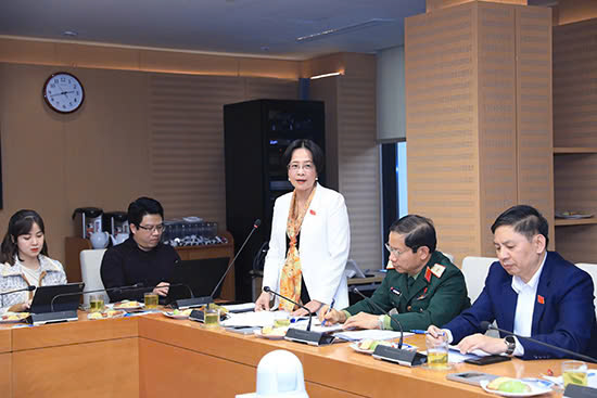 Đại biểu Nguyễn Thị Lan Hương - Chủ tịch HĐQT Công ty cổ phần sản xuất và xuất nhập khẩu Việt Phúc phát biểu thảo luận