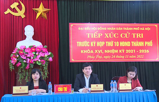 Tại buổi tiếp xúc, đại biểu HĐND Thành phố đã thông báo tới cử tri huyện Phúc Thọ về chương trình, nội dung, thời gian diễn ra Kỳ họp thứ 10 HĐND Thành phố; báo cáo tóm tắt tình hình phát triển kinh tế - xã hội năm 2022, nhiệm vụ năm 2023 của Thành phố và báo cáo với cử tri về nội dung trả lời của các sở, ngành và UBND Thành phố đối với kiến nghị của cử tri huyện Phúc Thọ tại các kỳ tiếp xúc trước.