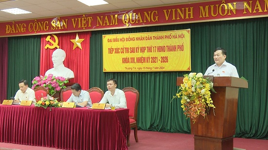 Tại buổi tiếp xúc, đại biểu Đỗ Văn Trường, Phó chánh Văn phòng Đoàn ĐBQH và HĐND Thành phố Hà Nội thông báo với cử tri kết quả kỳ họp thứ 17 HĐND Thành phố khóa XVI.