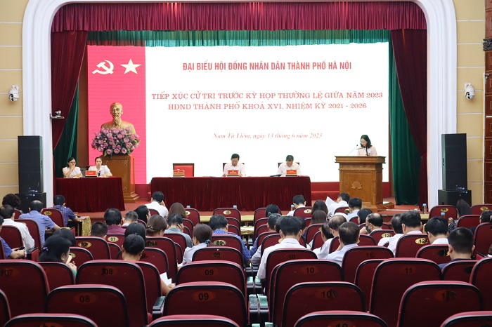 Sáng 13/6/2023, Tổ đại biểu HĐND TP Hà Nội, đơn vị bầu cử số 12 gồm ông Trần Đức Hoạt, Thành uỷ viên, Bí thư Quận ủy, Chủ tịch HĐND quận Nam Từ Liêm, Tổ trưởng Tổ đại biểu; bà Lâm Thị Quỳnh Dao - Ủy viên chuyên trách Ban pháp chế HĐND TP đã tiếp xúc cử tri quận Nam Từ Liêm trước Kỳ họp thường lệ giữa năm 2023 HĐND TP khóa XVI, nhiệm kỳ 2021-2026.