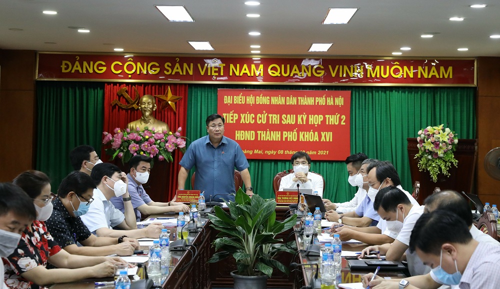 Thay mặt tổ đại biểu HĐND Thành phố đơn vị bầu cử số 08 đại biểu Nguyễn Quang Hiếu - Bí thư quận uỷ Hoàng Mai - Tổ trưởng tổ đại biểu HĐND Thành phố đã trao đổi với cử tri, làm rõ những nỗ lực của Thành phố nói chung và quận Hoàng Mai nói riêng trong công tác phòng chống dịch bệnh, phát triển kinh tế xã hội, đảm bảo an sinh xã hội; đồng thời ghi nhận toàn bộ các ý kiến tâm huyết của cử tri, kiến nghị các cơ quan chức năng kịp thời xem xét giải quyết.