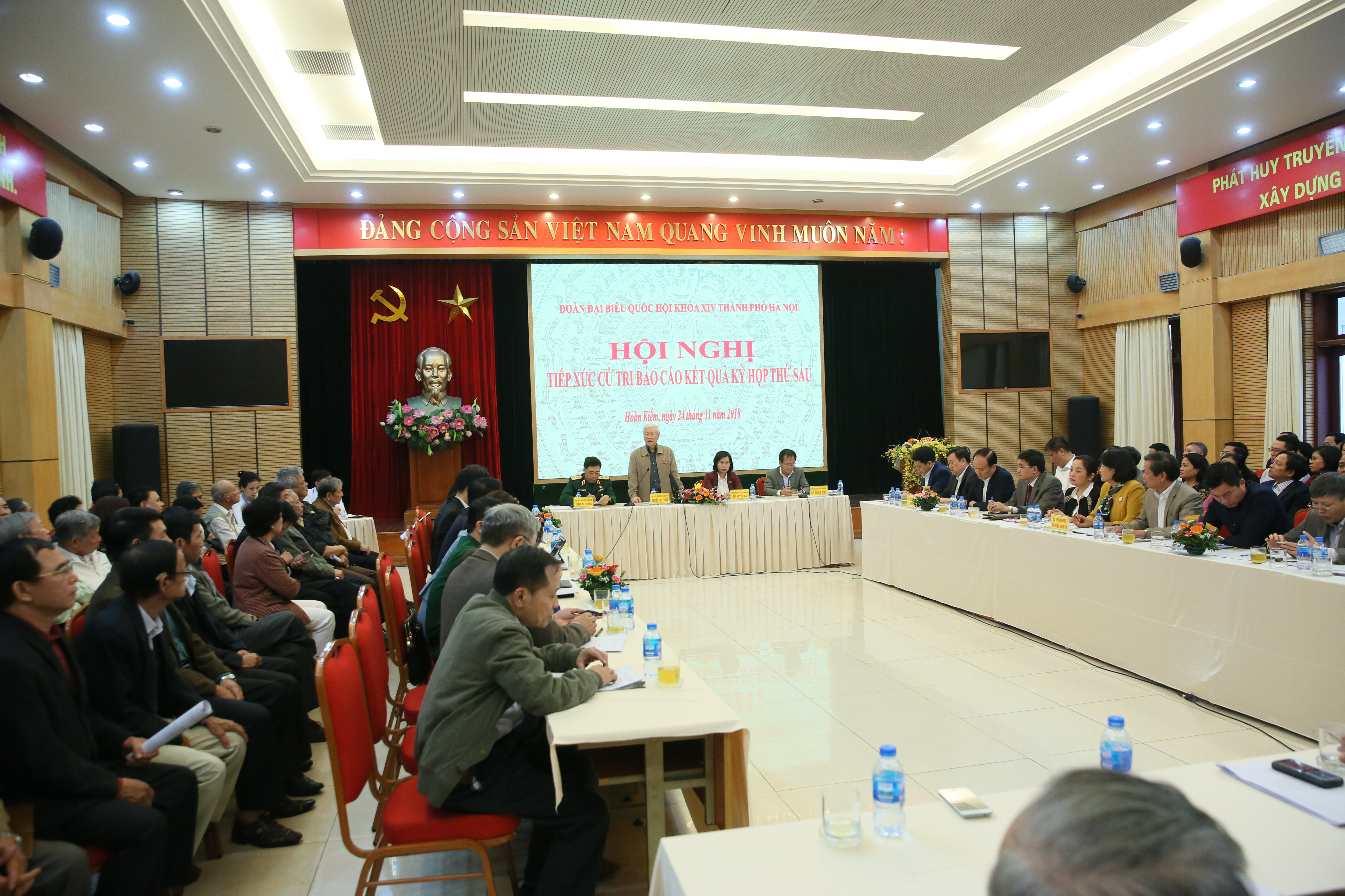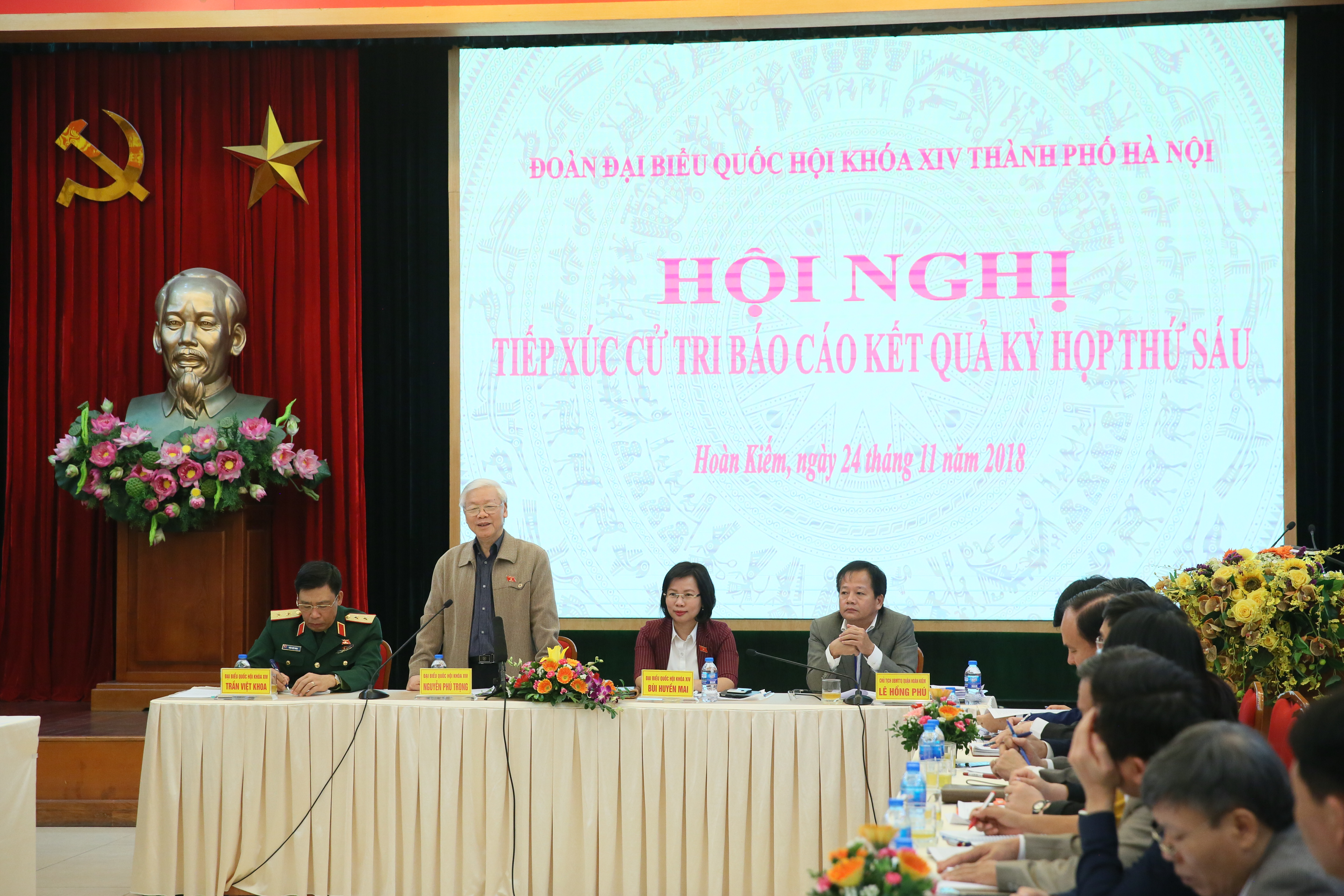 Ngày 24/11, Các vị ĐBQH Hà Nội gồm Tổng Bí thư, Chủ tịch nước Nguyễn Phú Trọng; Đại biểu Bùi Huyền Mai, thành ủy viên, Phó trưởng Đoàn ĐBQH Hà Nội; Đại biểu Trần Việt Khoa, Trung tướng, Giám đốc Học viện Quốc phòng tiếp xúc cử tri quận Ba Đình, Tây Hồ và Hoàn Kiếm báo cáo kết quả kỳ họp thứ 6, Quốc hội khóa XIV.