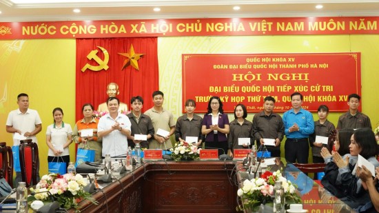 * Ngay sau hội nghị tiếp xúc cử tri, đại biểu Quốc hội thành phố Hà Nội và Thường trực Liên đoàn Lao động thành phố Hà Nội đã trao tặng 50 suất quà tới 50 công nhân lao động khó khăn của huyện Thạch Thất, mỗi suất quà trị giá 1 triệu đồng.