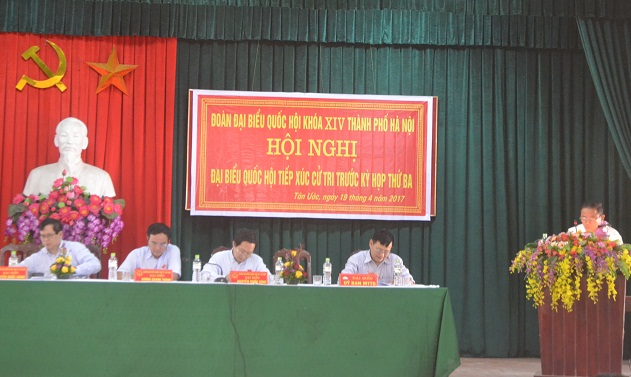 Phát biểu ý kiến tại buổi tiếp xúc, cử tri Lê Văn Thụ đề nghị Nhà nước quan tâm hỗ trợ kinh phí tu sửa các di tích lịch sử đã được xếp hạng đang xuống cấp; đầu tư phát triển sản xuất nông nghiệp, hỗ trợ máy đập đất, máy cấy, đặc biệt đầu ra cho sản phẩm chăn nuôi hiện đang gặp rất nhiều khó khăn.