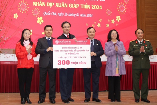 Chiều 26/01/2024, Đoàn đại biểu Quốc hội thành phố Hà Nội ứng cử tại huyện Quốc Oai cùng lãnh đạo Ngân hàng NN&PTNT - Chi nhánh Hà Tây tổ chức Chương trình An sinh xã hội chung tay vì người nghèo, gia đình chính sách nhân dịp Tết nguyên đán Giáp Thìn 2024.
