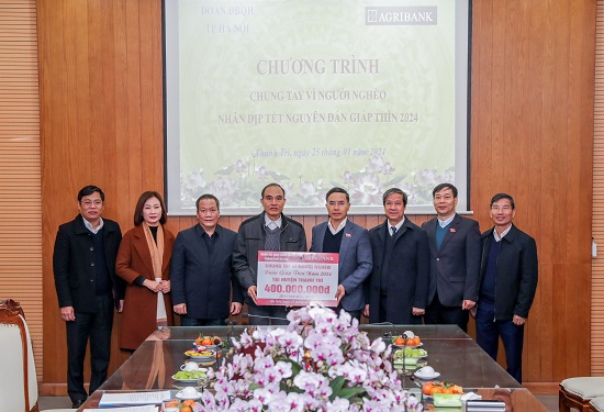 Thể hiện tình cảm, tinh thần “tương thân tương ái” với các hộ nghèo, gia đình chính sách, Đoàn đại biểu Quốc hội thành phố Hà Nội và Agribank đã trao 400 triệu đồng ủng hộ Quỹ vì người nghèo của huyện Thanh Trì.