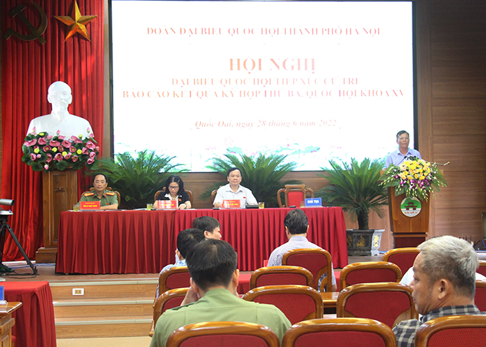 Sáng 28/6/2022, Đại biểu Quốc hội thành phố Hà Nội thuộc đơn vị bầu cử số 8 đã tiếp xúc cử tri các huyện: Quốc Oai, Chương Mỹ, Thạch Thất để báo cáo kết quả Kỳ họp thứ 3, Quốc hội khóa XV.