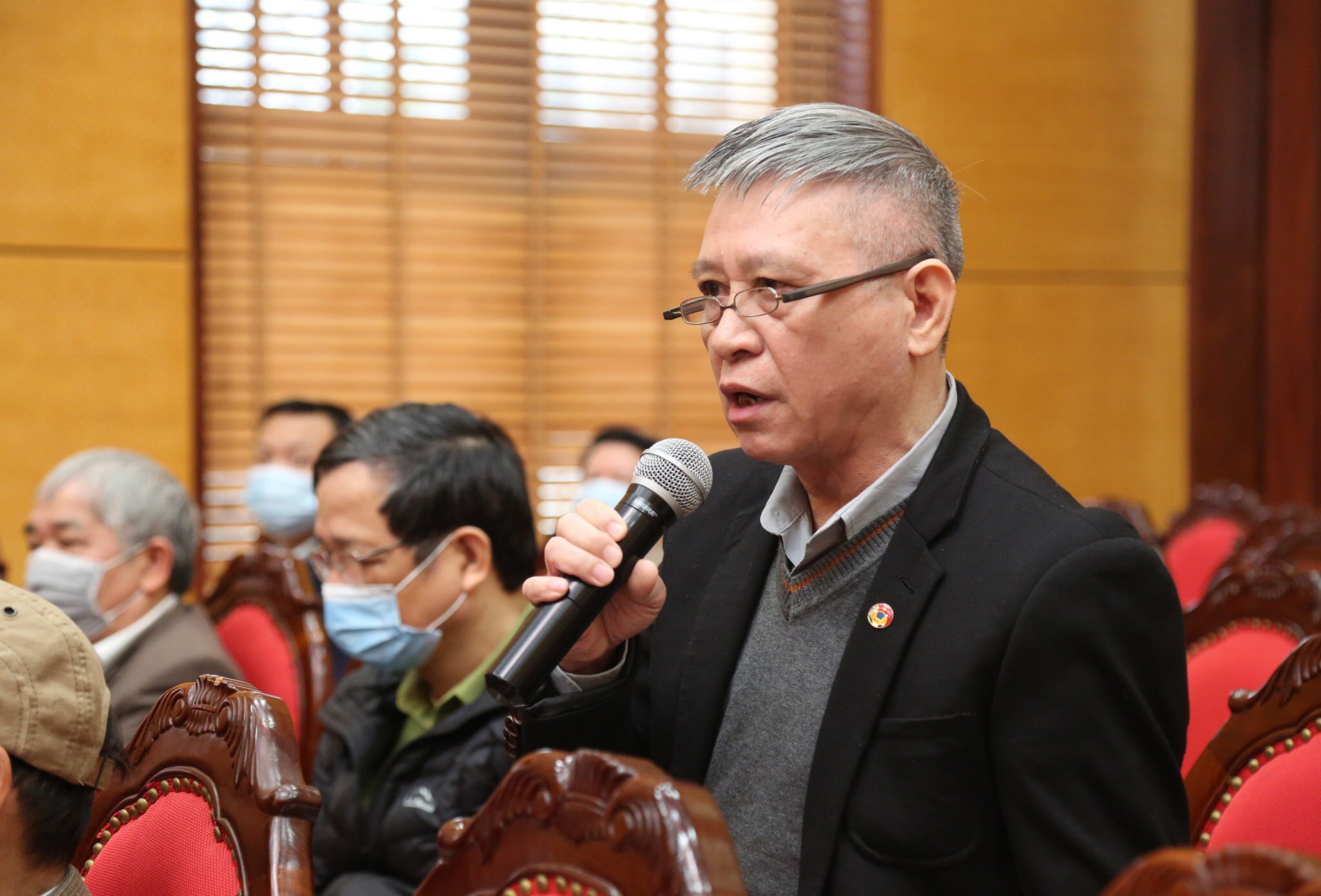 Cử tri phát biểu tại Hội nghị tiếp xúc (Ảnh: Thu Trang)