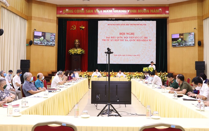 Sáng 26/4/2022, để chuẩn bị cho kỳ họp thứ ba, Quốc hội khóa XV, đại biểu Quốc hội thuộc Đơn vị bầu cử số 2 (Đoàn đại biểu Quốc hội thành phố Hà Nội) đã tiếp xúc cử tri các quận, huyện: Hoàn Kiếm, Long Biên, Đông Anh.