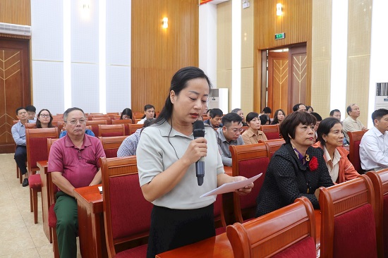 Đại diện phòng Văn hóa và Thông tin quận Hoàng Mai nêu ý kiến tại buổi tiếp xúc cử tri