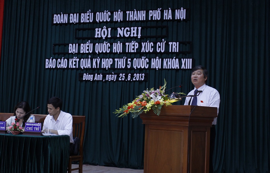 Ngày 25/6, Đoàn đại biểu Quốc hội thành phố Hà Nội tại đơn vị bầu cử số 9 (huyện Đông Anh và quận Long Biên) gồm các đại biểu: Nguyễn Sơn, Phó Chánh án Tòa án Nhân dân tối cao; Nguyễn Thị Ngọc Thanh, Chủ tịch Hội Liên hiệp Phụ nữ Việt Nam; Nguyễn Ngọc Bảo, CTHĐTV kiêm TGĐ Công ty Đầu tư Việt Hà đã tiếp xúc cử tri sau kỳ họp thứ 5 Quốc hội khóa XIII.