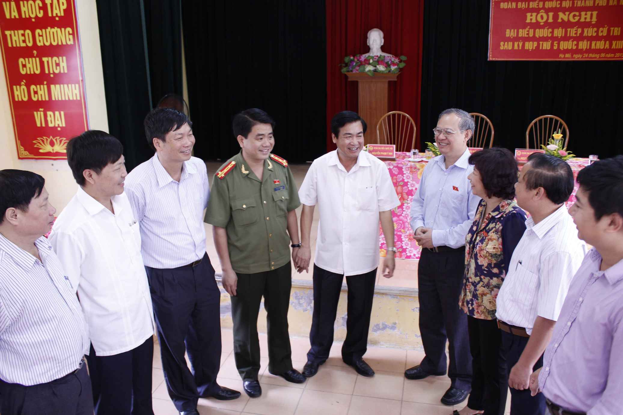 Sáng 24-6, các đại biểu Quốc hội đơn vị bầu cử số 5: Đinh Xuân Thảo, Viện trưởng Viện Nghiên cứu lập pháp thuộc Ủy ban Thường vụ Quốc hội; Nguyễn Đức Chung, Giám đốc Công an thành phố Hà Nội; Nguyễn Phạm Ý Nhi, Giám đốc bệnh viện đa khoa Xanh Pôn đã tiếp xúc với đông đảo cử tri của huyện Đan Phượng tại địa điểm xã Hạ Mỗ.